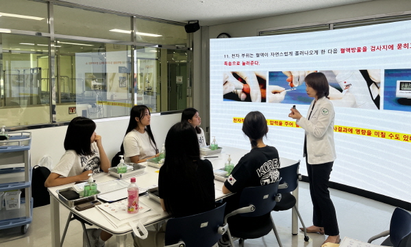 12일 건양대 전공 융합 진로체험 캠프에 참여한 고교생들이 간호학과 교육과정을 체험하는 모습.jpg