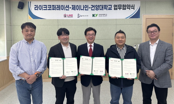 건양대학교(총장 김용하) SW중심대학사업단(단장 김용석)은 지난 11일 건양대 메디컬캠퍼스 죽헌정보관에서 ㈜라이크코퍼레이션(대표 최강배)과 제이나인㈜(대표 조재구)과 업무협약을 체결했다고 밝혔다.