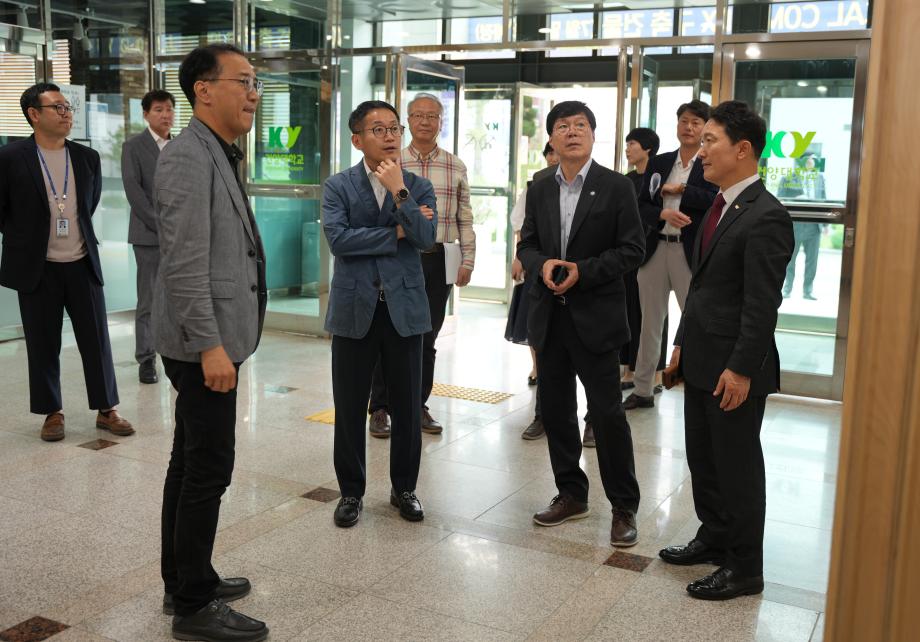 특히, 3원(국방산학융합원·국방바이오연구원·사회과학학술원) 내 5개 시험·인증·실증센터(국방환경 시험평가인증센터·합성환경기반 국방실증지원센터·국방로봇웨어러블 전주기지원센터·스마트푸드테크 글로컬실증지원센터·국방전략발전연구센터) 구축에 대한 사업지원 경과보고와, 전교생 및 지역 시민들의 CPR(cardiopulmonary resuscitation, 심폐소생술) 자격증 취득 과정을 지원할 KY-의료보건지원본부 활동에 대해 지자체의 관심이 많았으며, 글로벌 산학협력 기반 확대로의 ‘KY-Global Business Support Desk’ 협약 및 수출 계약 실적 성과 등에 대해서도 논의가 이어졌다. 금번 글로컬대학사업추진위원회 회의 이후에는 교육 현장으로 이동하여 관련 시설 구축에 대한 토의도 함께 진행했다.